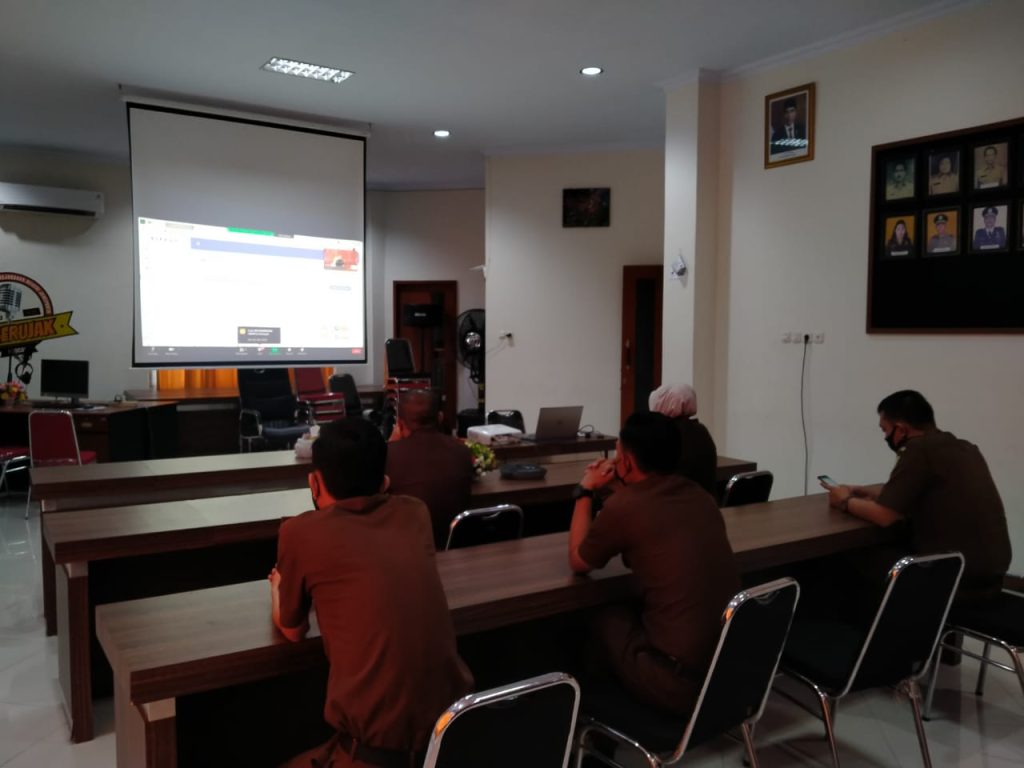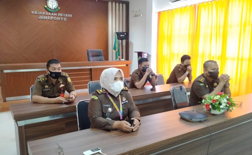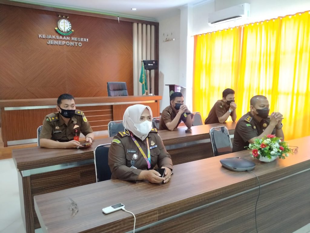Kasubbagbin, Kasi Pidum, Kasi Pidsus beserta staff Kejari Jeneponto mengikuti Bimbingan Teknis Absensi Digital dan Pemanfaatan E-Sign Untuk Aplikasi CMS yang dilaksanakan melalui sarana Video Conference di Ruang Aula Kejari Jeneponto dengan mematuhi protokol kesehatan.
