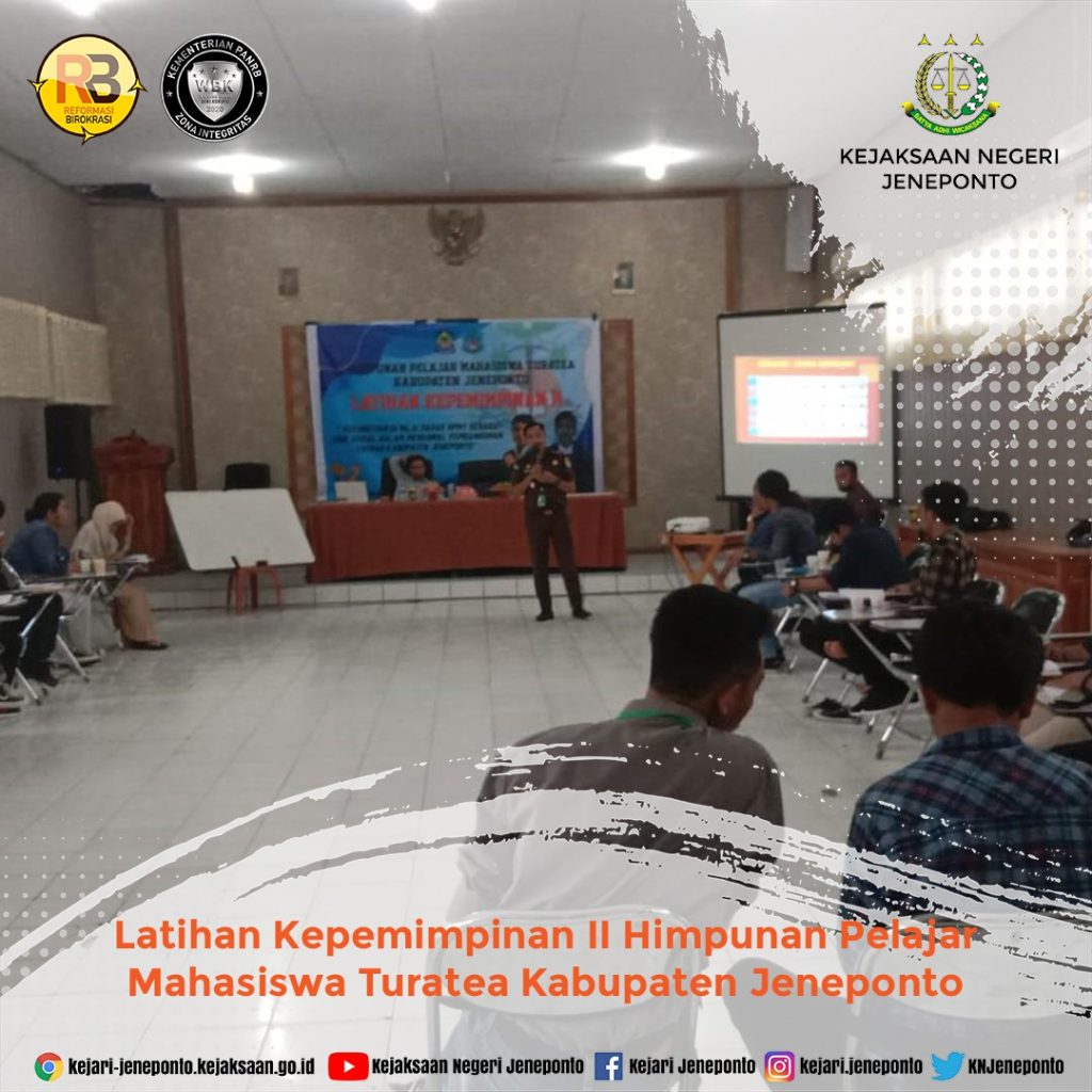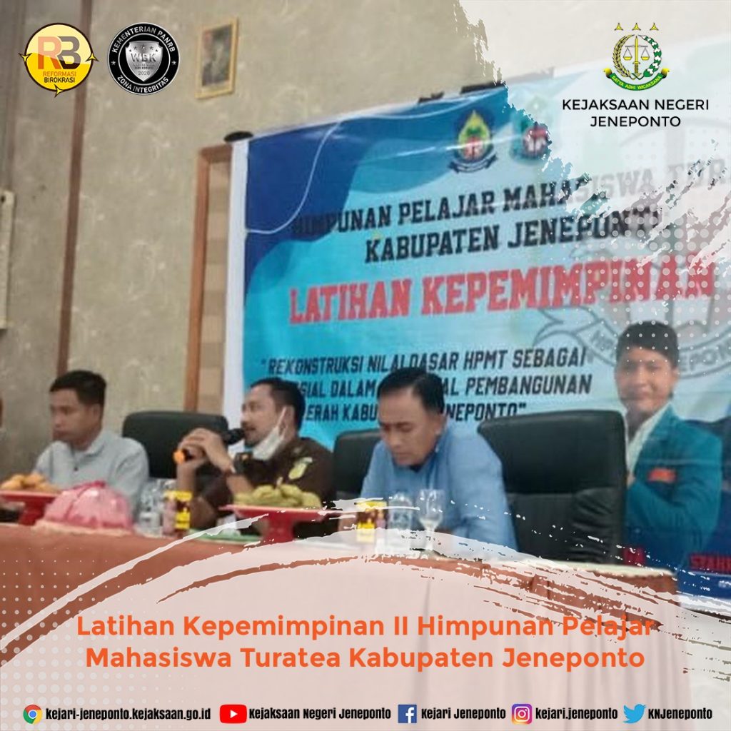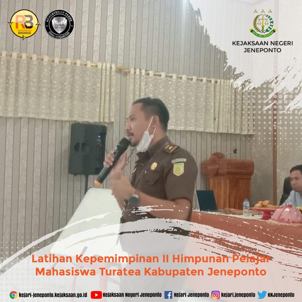 Kasi Intel Kejari Jeneponto mewakili Kepala Kejaksaan Negeri Jeneponto sebagai Pemateri Pada kegiatan Latihan Kepemimpinan II Himpunan Pelajar Mahasiswa Turatea Kabupaten Jeneponto