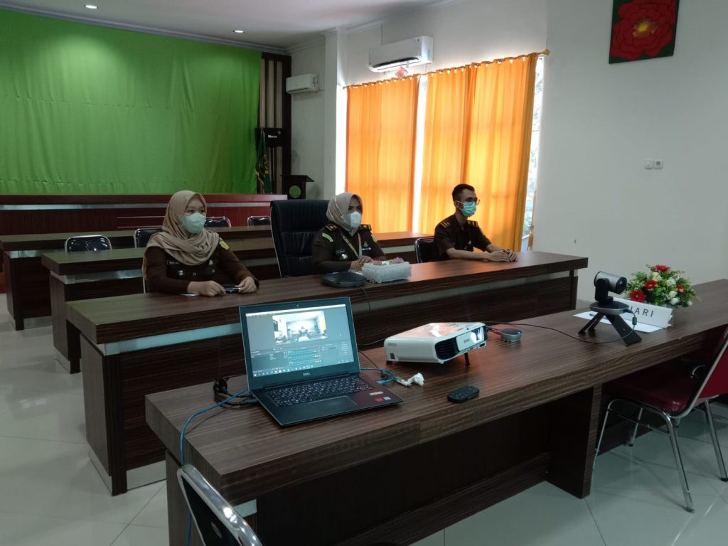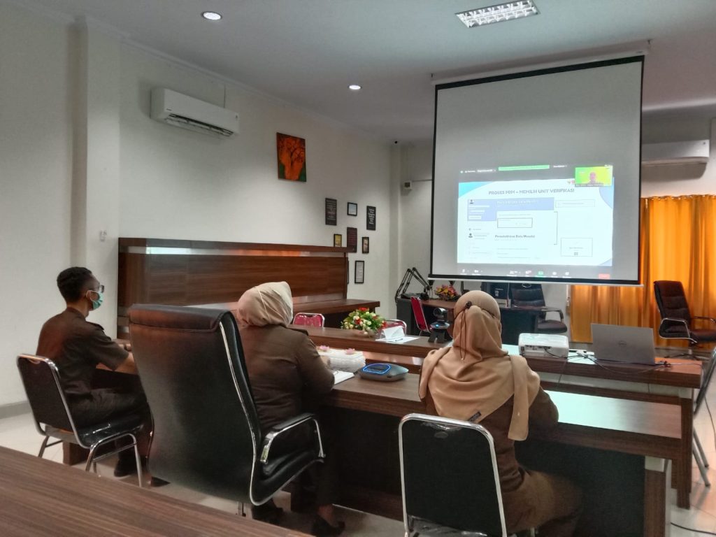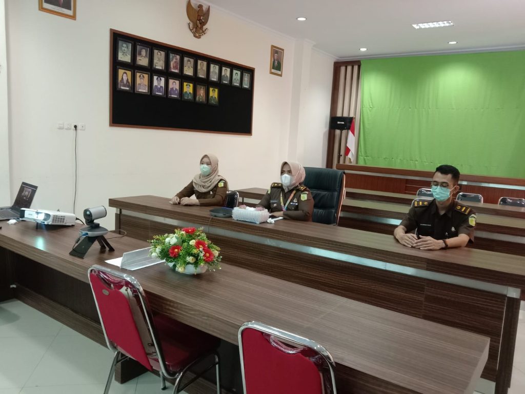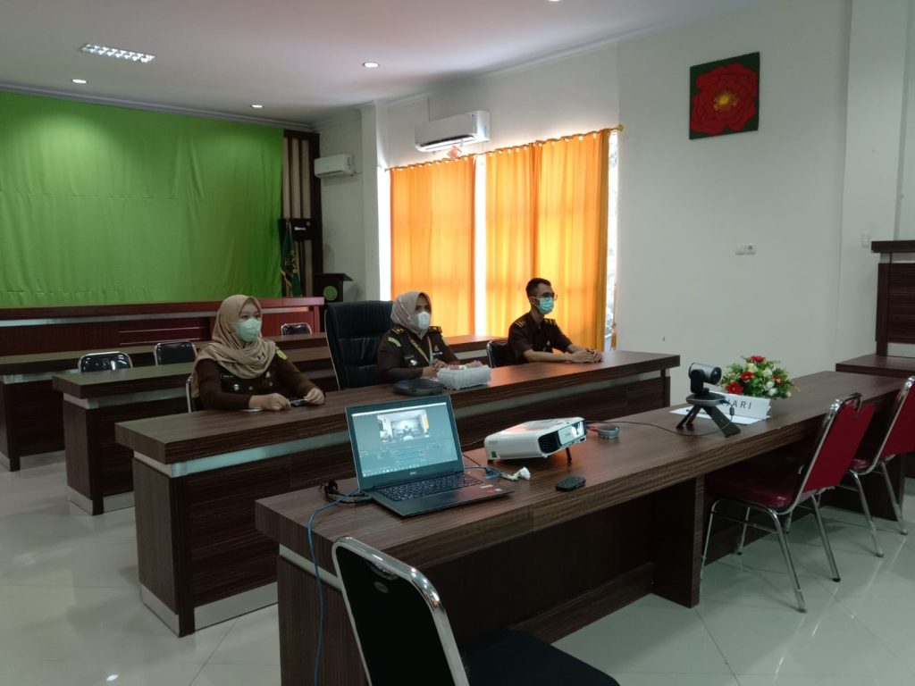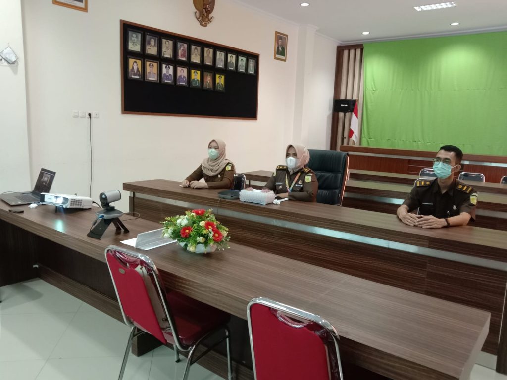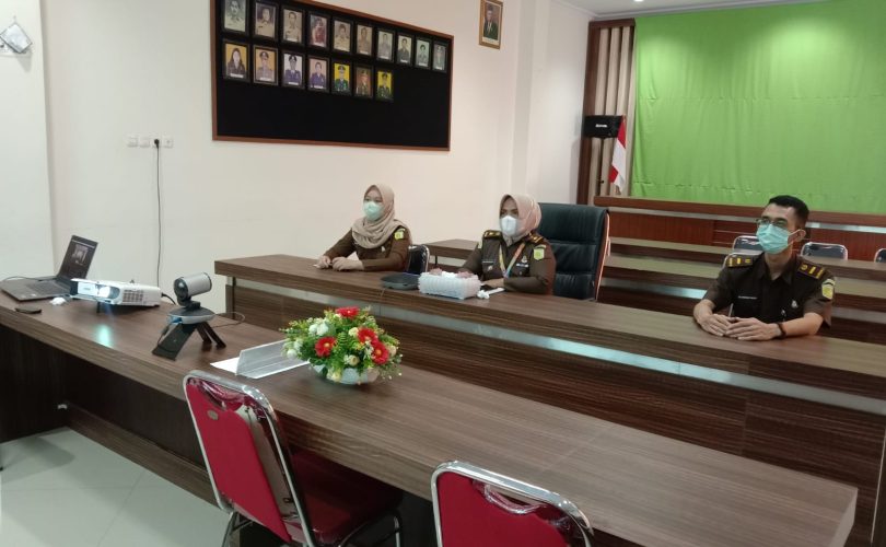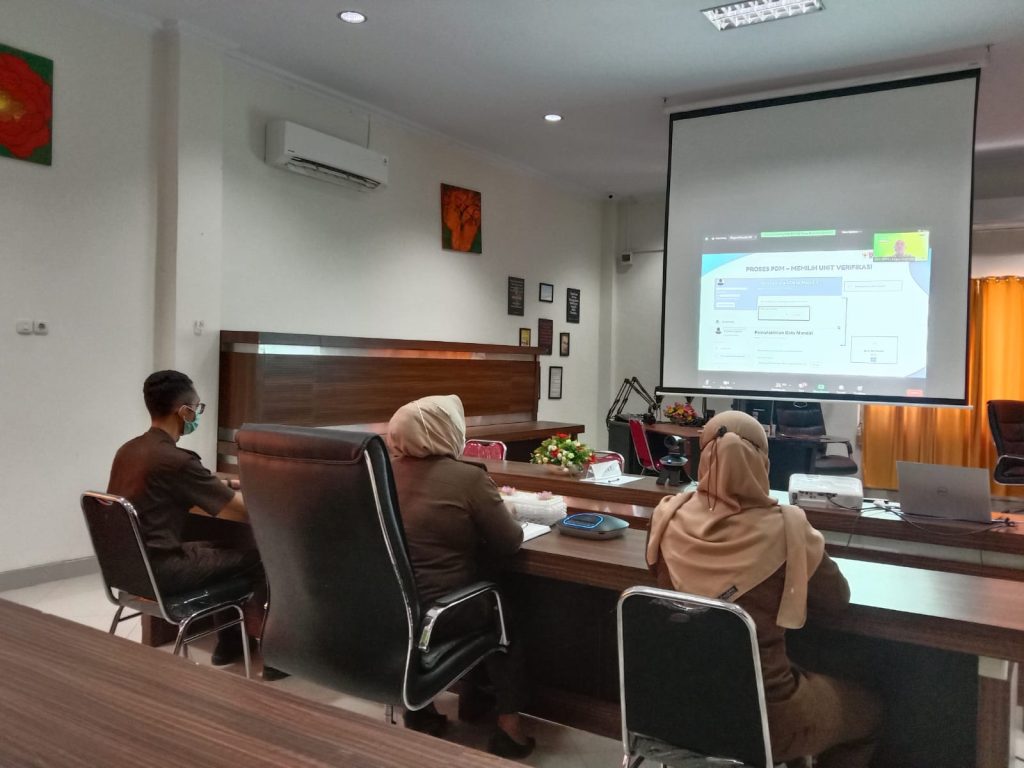 Kepala Sub Bagian Pembinaan bersama Staff mengikuti Monitoring, Evaluasi dan Bimbingan Teknis Pemutakhiran Data Mandiri ASN 2021 yang dilaksanakan melalui sarana Video Conference di Ruang Aula Kejari Jeneponto dengan mematuhi protokol kesehatan.