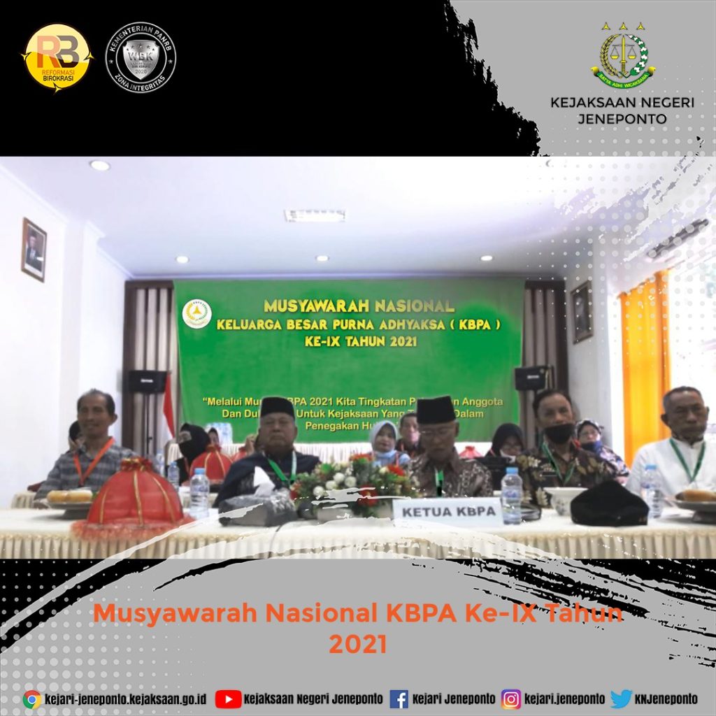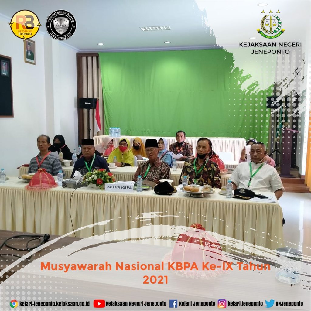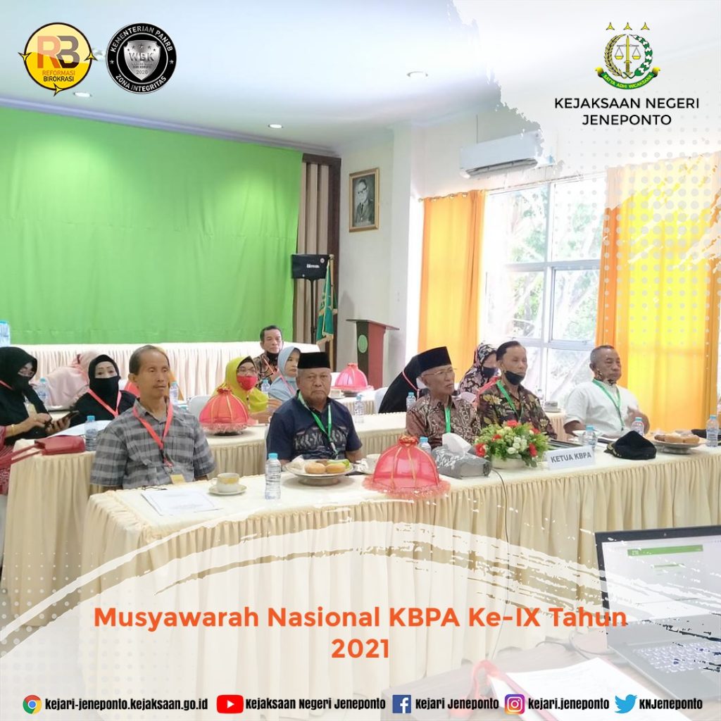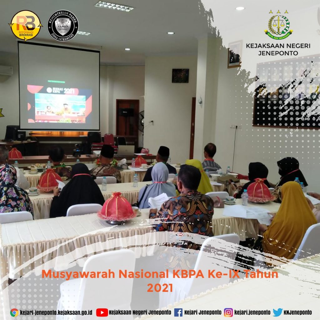 Keluarga Besar Purna Adhyaksa Kejaksaan Negeri Jeneponto mengikuti Musyawarah Nasional KBPA Ke-IX Tahun 2021 melalui sarana Video Conference di Ruang Aula Kejari Jeneponto dengan mematuhi protokol kesehatan