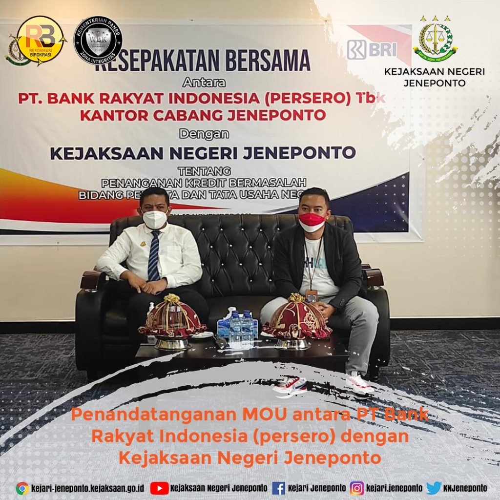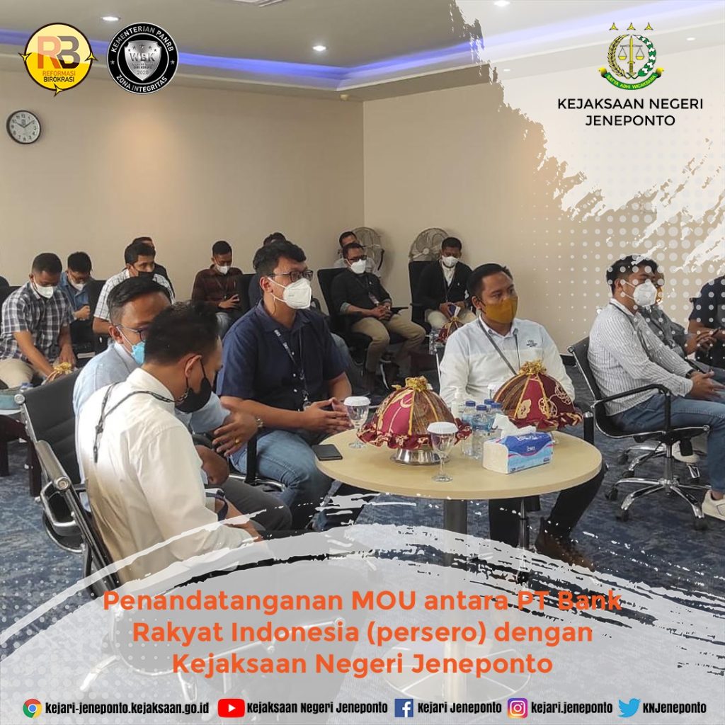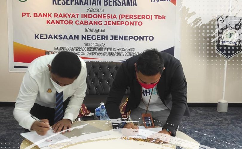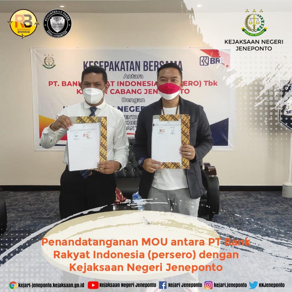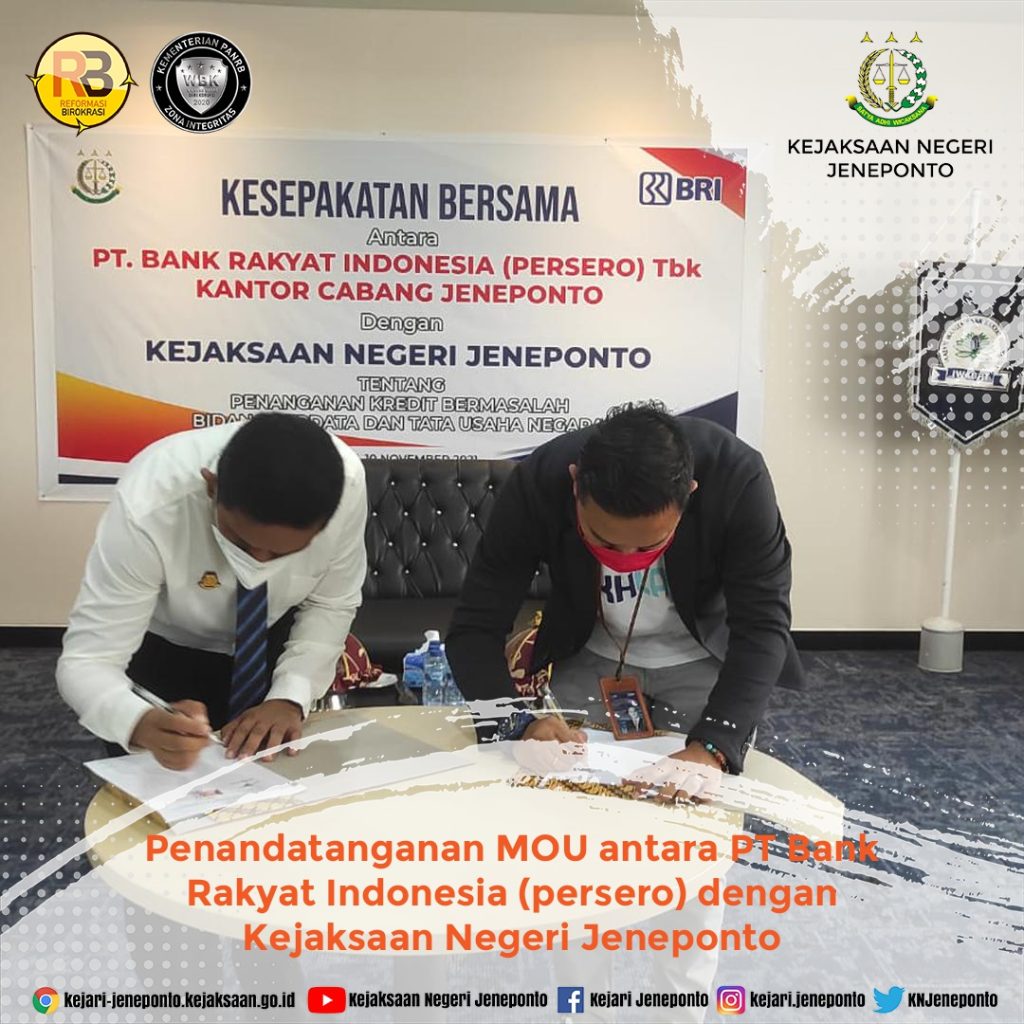 Rabu, 10 November 2021 Penandatanganan MoU antara PT Bank Rakyat Indonesia (persero) dengan Kejaksaan Negeri Jeneponto Bidang Perdata dan TUN