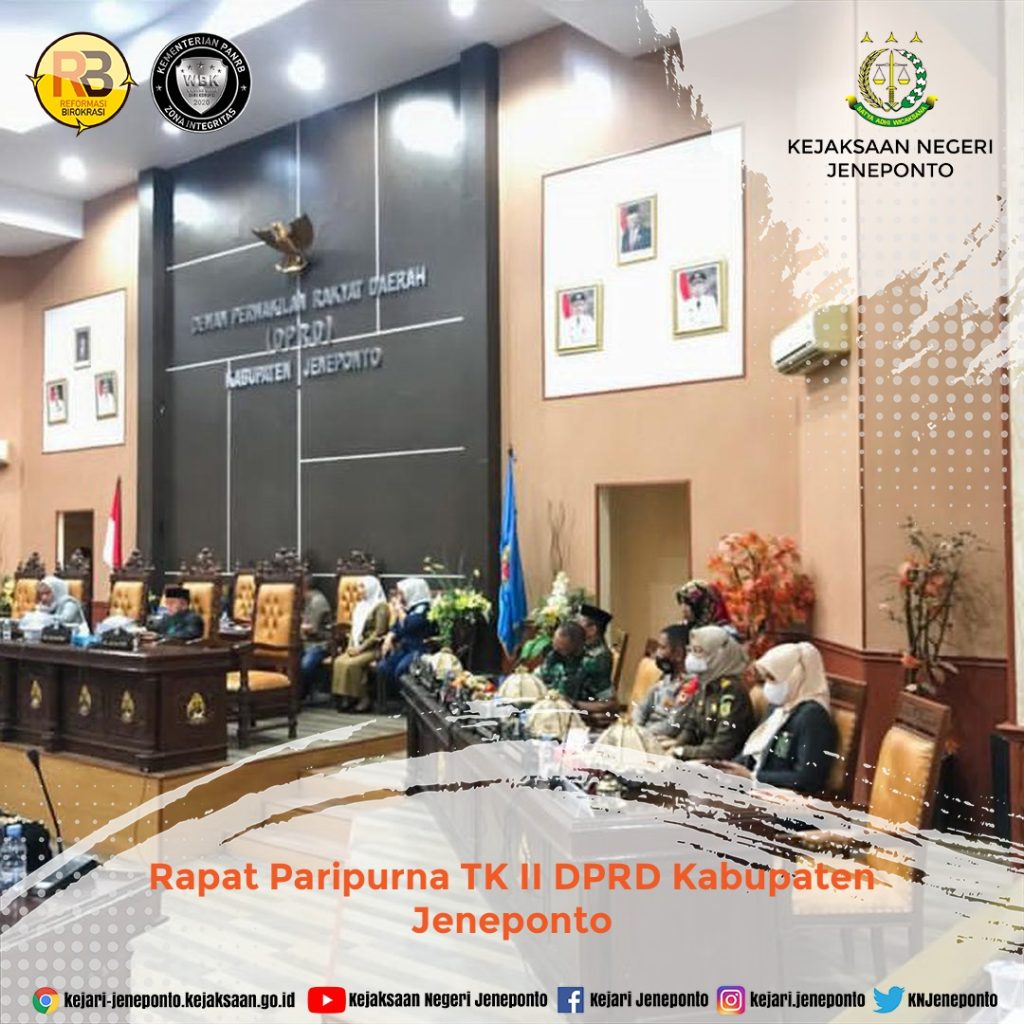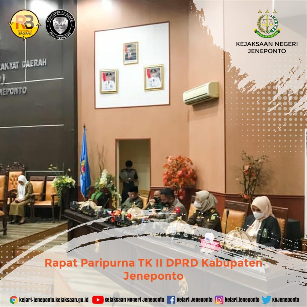 Kepala Kejaksaan Negeri Jeneponto yang diwakili oleh Kepala Sub Seksi Penuntutan Pidsus menghadiri Rapat Paripurna TK II DPRD Kabupaten Jeneponto