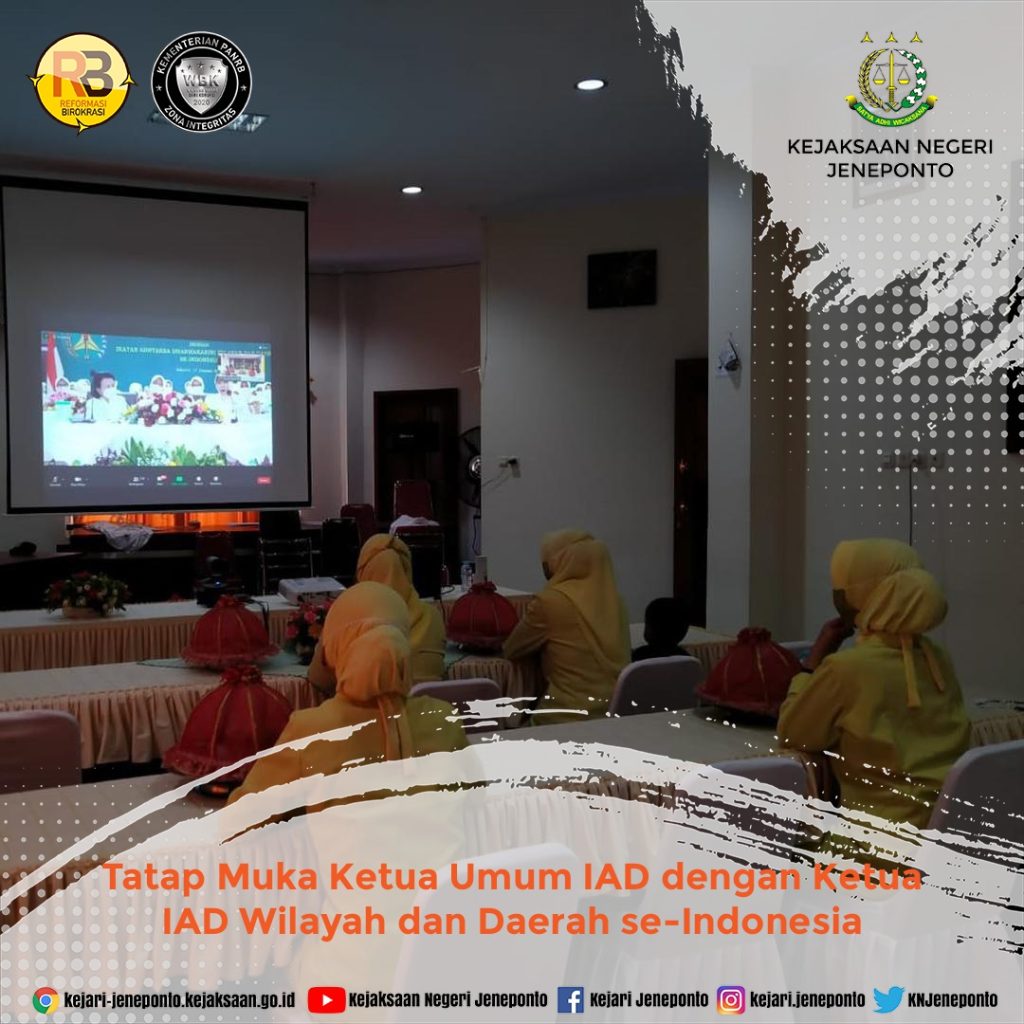 Pengurus dan anggota IAD Daerah Jeneponto mengikuti Tatap Muka Ketua Umum IAD dengan Ketua IAD Wilayah dan Daerah se-Indonesia melalui sarana Video Conference di Ruang Aula Kejari Jeneponto dengan mematuhi protokol kesehatan