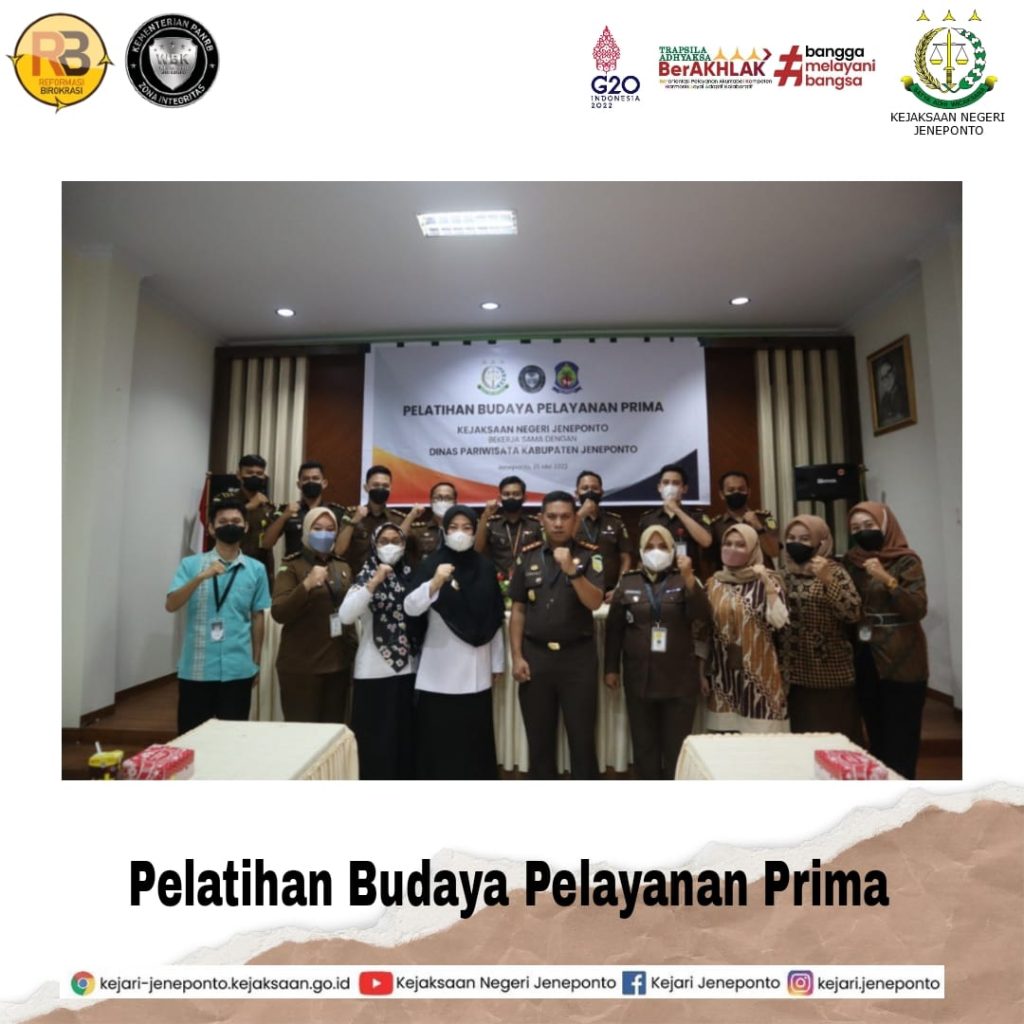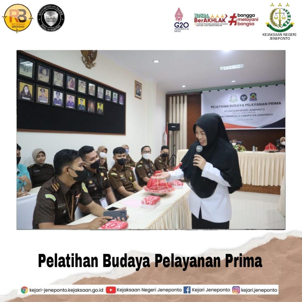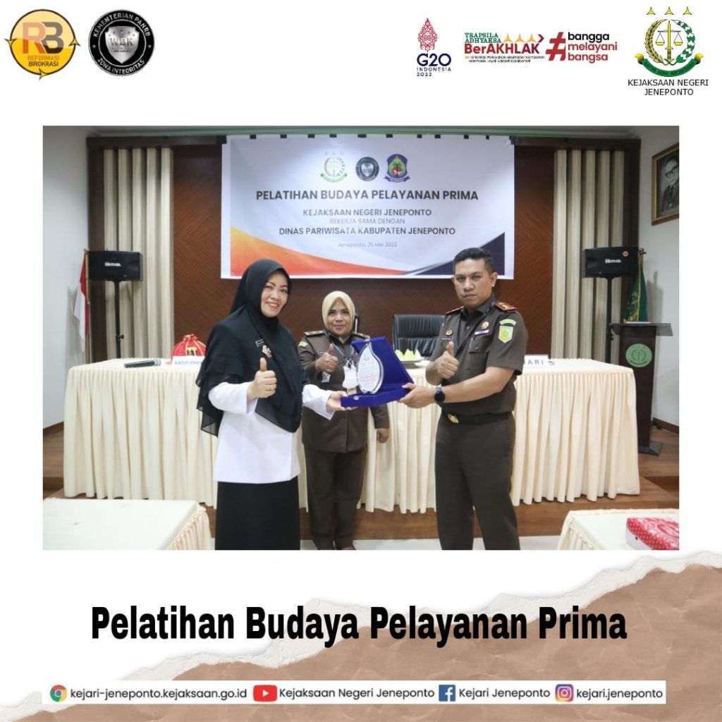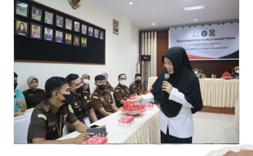 Bertempat di Aula Kejaksaan Negeri Jeneponto diadakan kegiatan ” Pelatihan Budaya Pelayanan Prima ” yang bekerjasama dengan Dinas Pariwisata Kabupaten Jeneponto