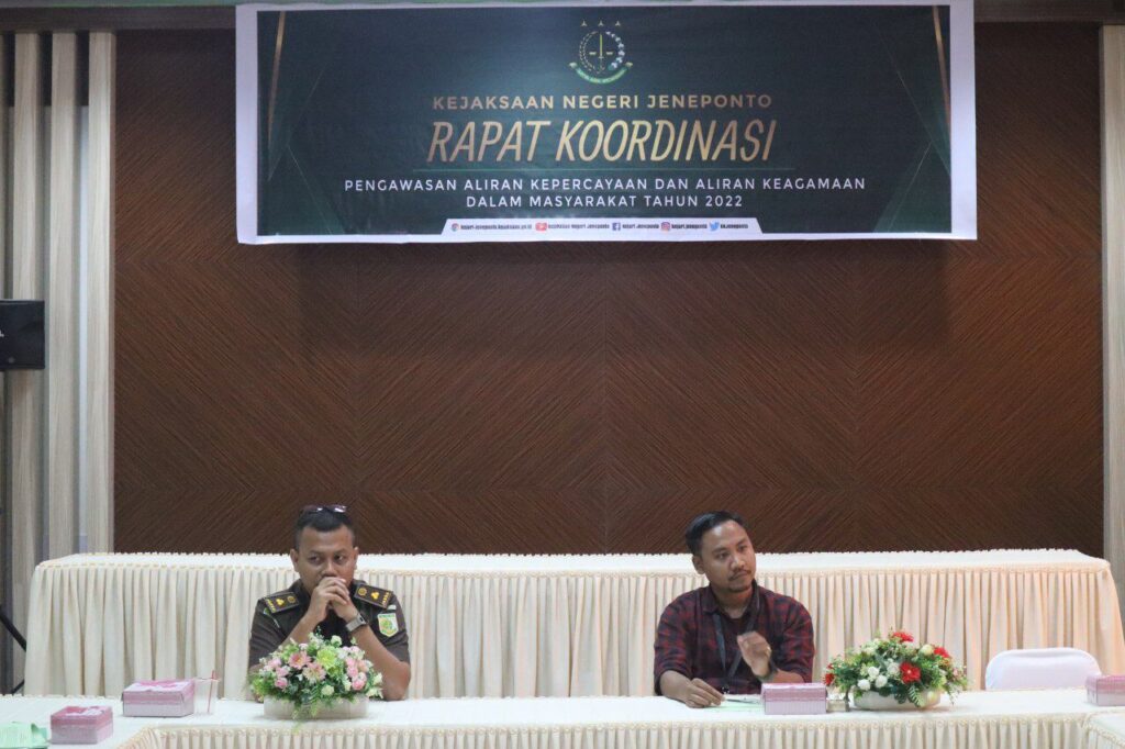 Telah dilaksanakan Rapat Koordinasi Pengawasan Aliran Kepercayaan dan Aliran Keagamaan dalam Masyarakat Tahun 2022 di Aula Kejaksaan Negeri Jeneponto, Kegiatan dilaksanakan dan Dipimpin oleh Kasi Intel serta Kasi Pidum Kejaksaan Negeri Jeneponto