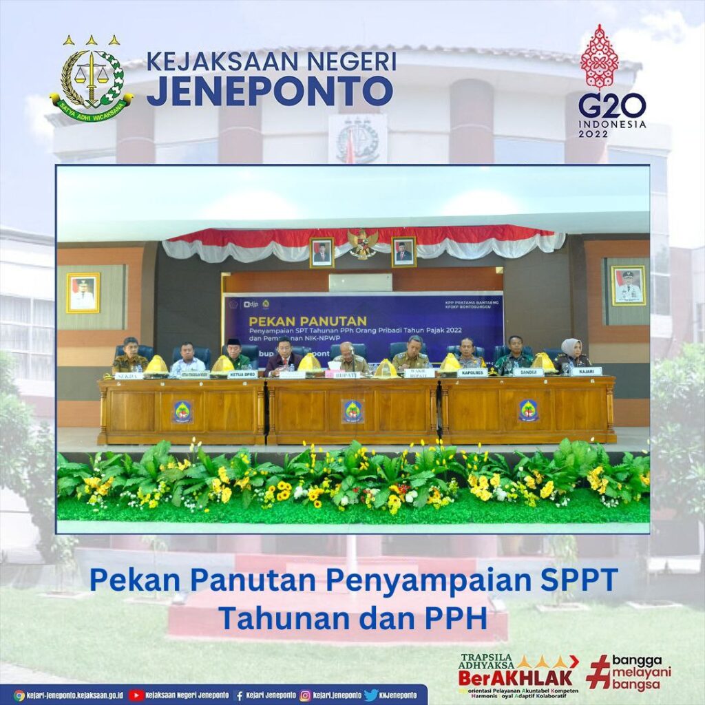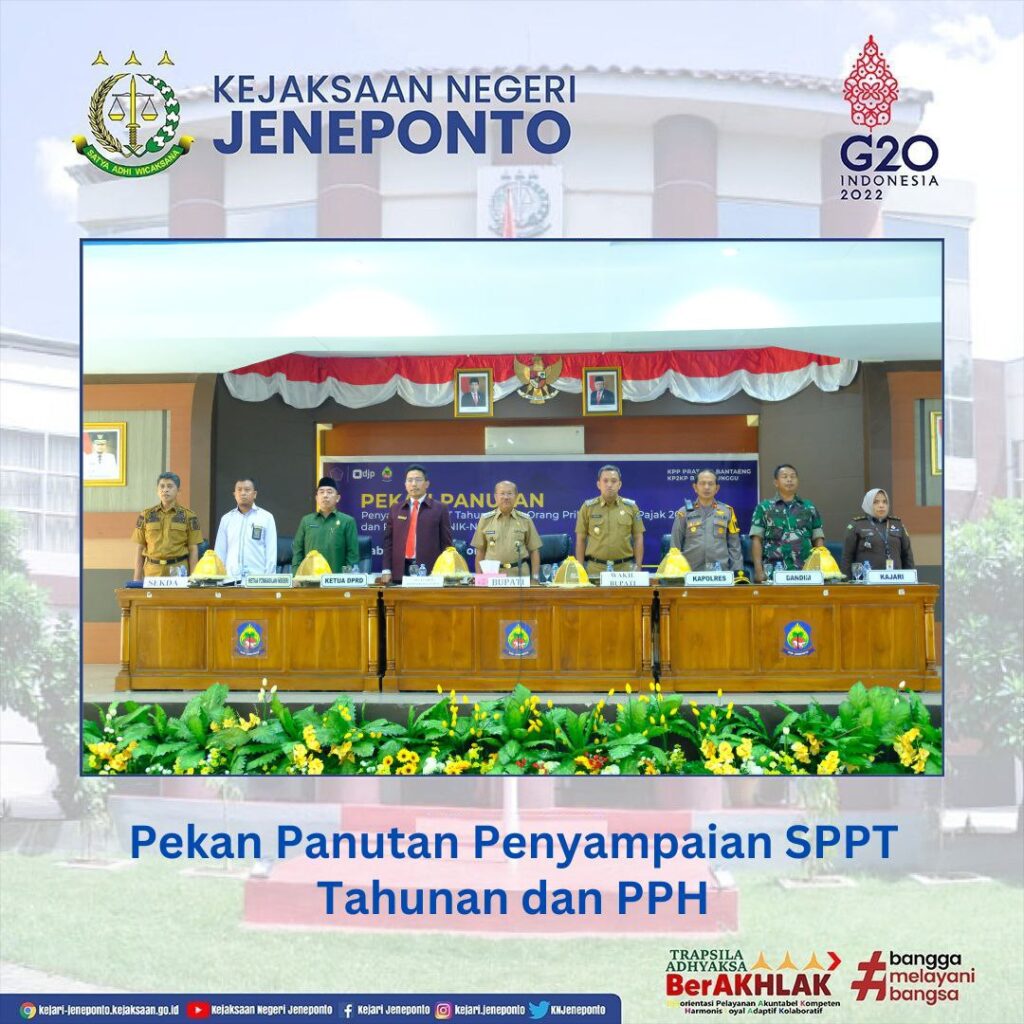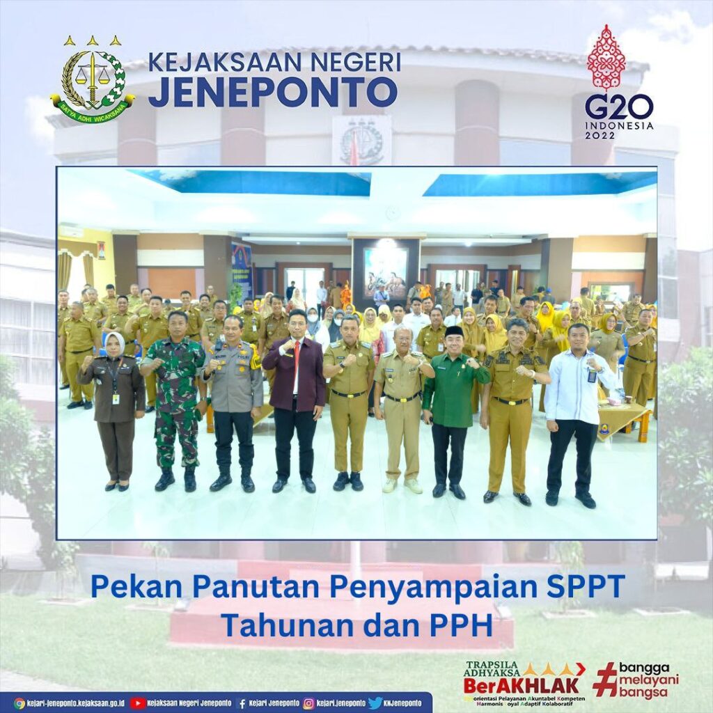 Pada hari Senin, tgl 20 Maret 2023 pukul 10.00 wita bertempat di gedung pola kantor bupati jeneponto, mengikuti acara pekan panutan penyampaian SPPT tahunan dan PPH kegiatan di hadiri oleh: