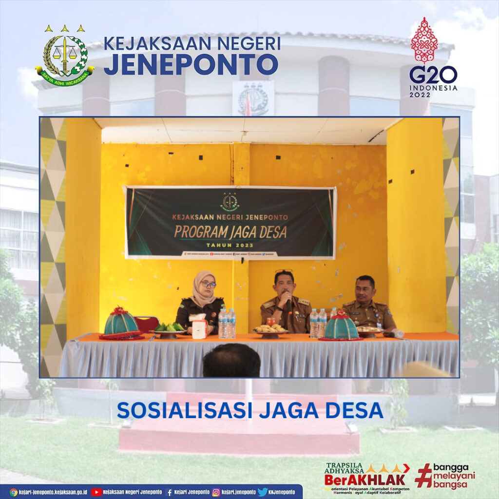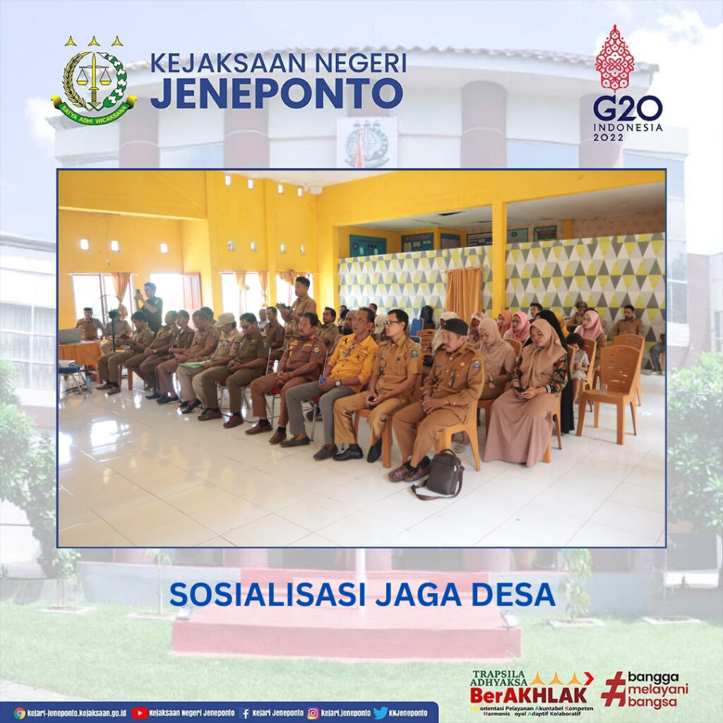 Bahwa turut hadir Kepala Kejaksaan Negeri Jeneponto memberikan sambutan untuk membuka kegiatan Sosialisasi Jaga Desa
