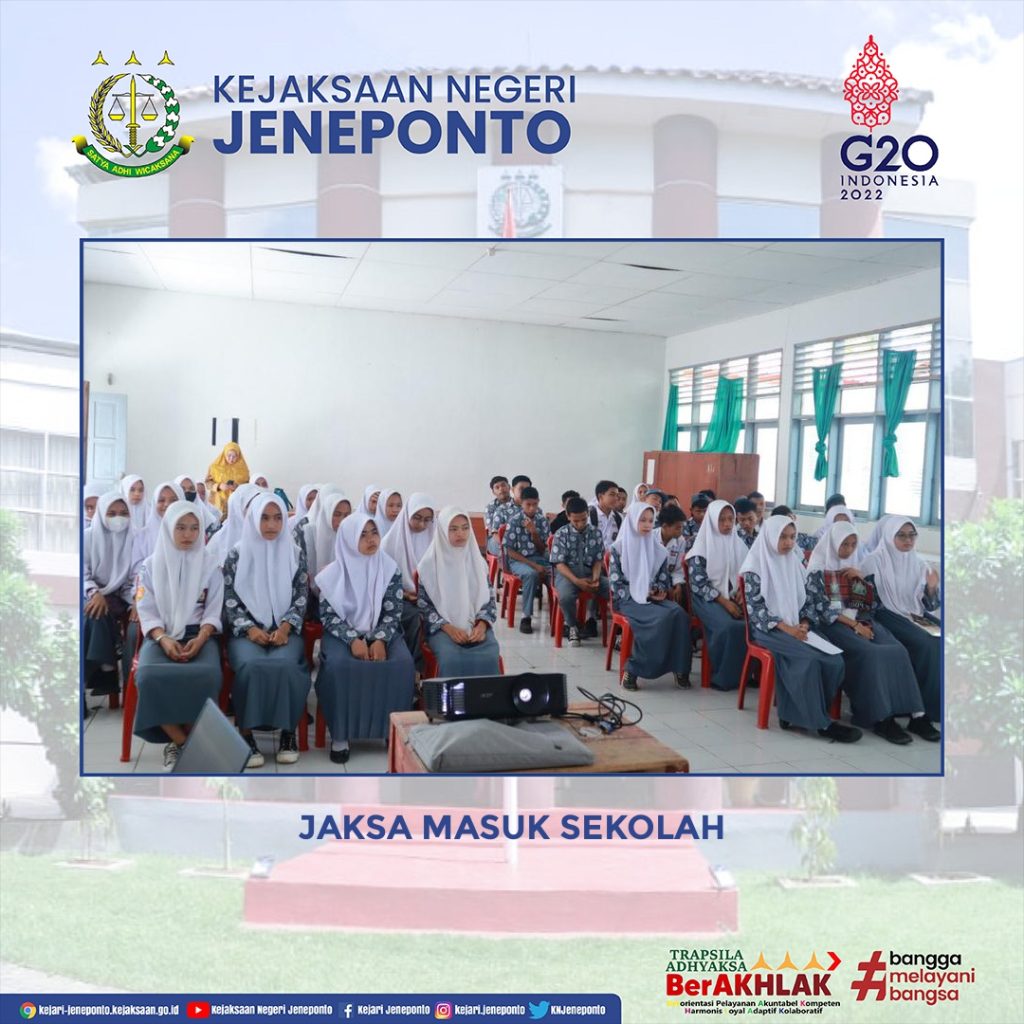 Bahwa Hadir dalam Giat tersebut adalah Kasubsi IPOLEKSOSBUD, Jaksa Fungsional serta Staf Kejari Jeneponto, Kepala Sekolah, serta Guru dan siswa SMA Negeri 03 Jeneponto.
