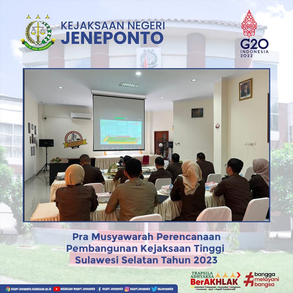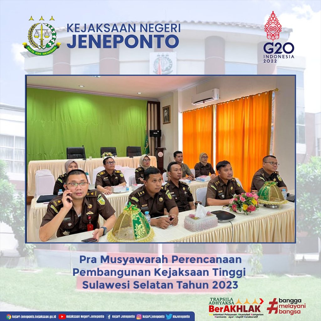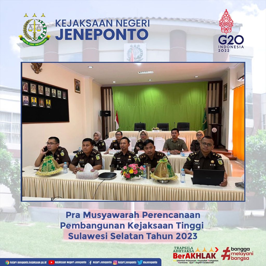 Kejaksaan Negeri Jeneponto Mengikuti Kegiatan Vicon Pra Musyawarah Perencanaan Pembangunan Kejaksaan Tinggi Sulawesi Selatan Tahun 2023 bertempat di Aula Kejaksaan Negeri Jeneponto.