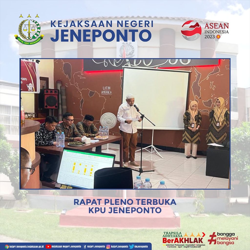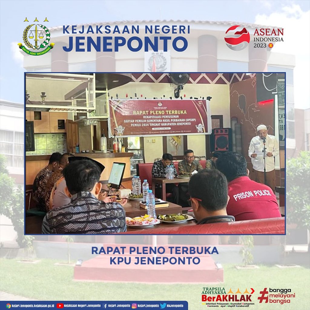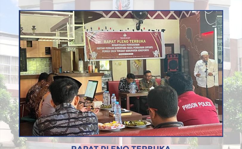 Telah dilaksanakan kegiatan Rapat Pleno Terbuka terkait Rekapitulasi Penyusunan Daftar Pemilih Sementara Hasil Perbaikan (DPSHP) Pemilu 2024 Tingkat Kabupaten Jeneponto bertempat di Cafe 88 Jln.Lingkar Kab. Jeneponto.