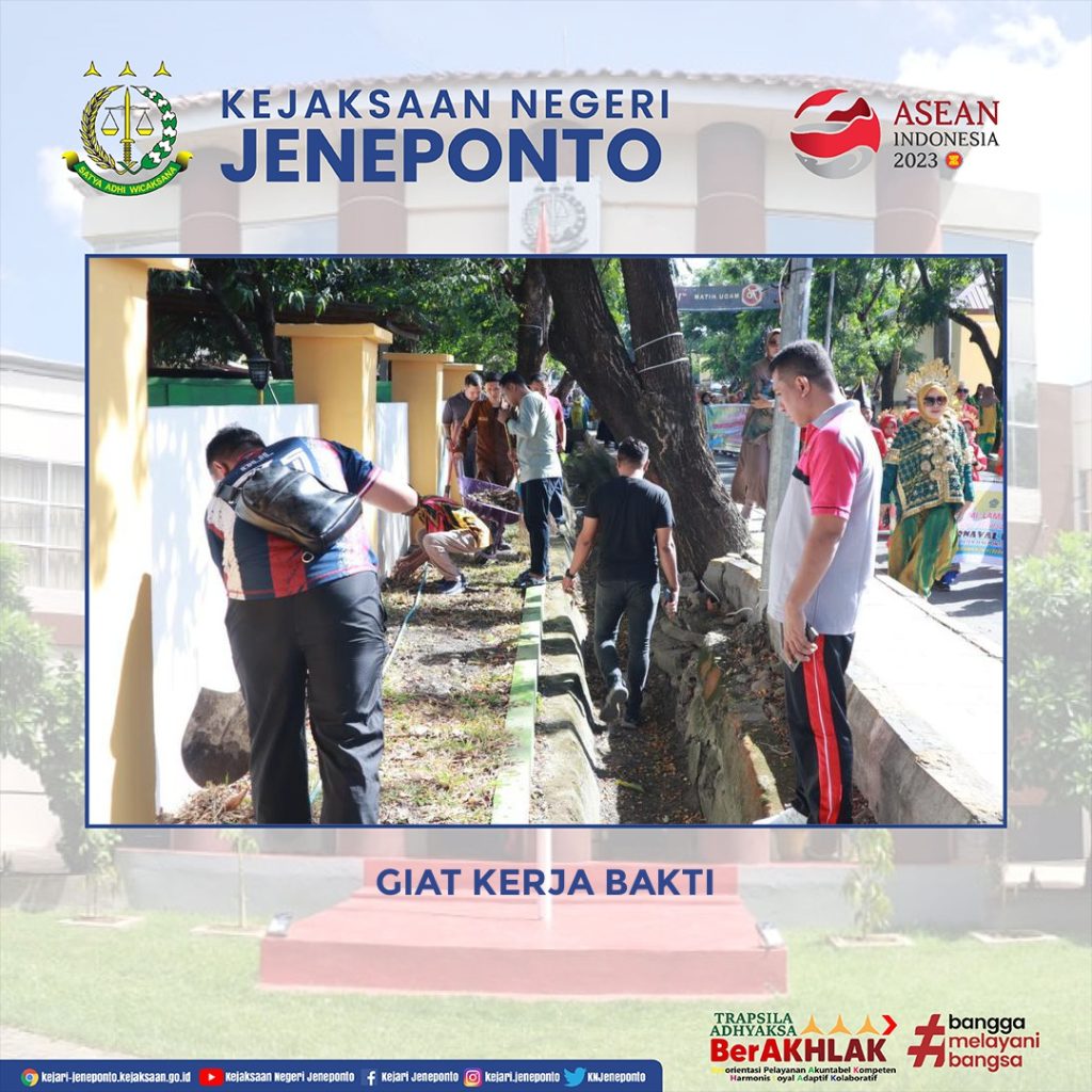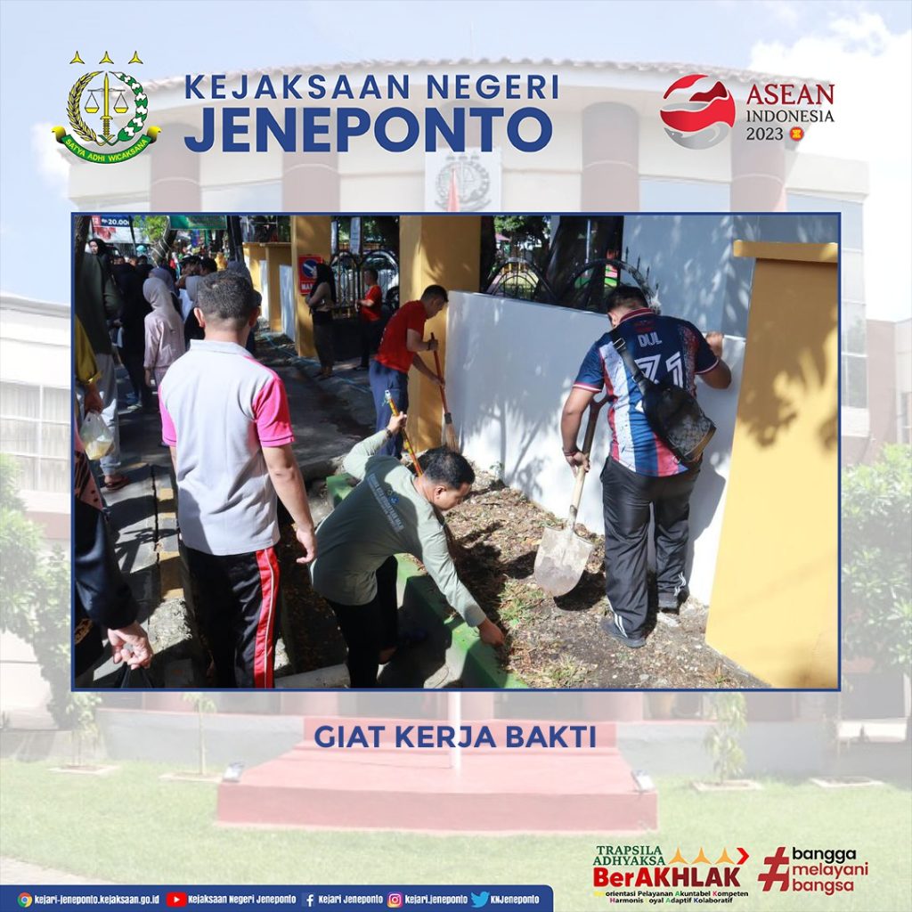 Kegiatan kerja bakti ini dilakukan agar kita senantiasa menjaga kebersihan lingkungan kantor Kejaksaan Negeri Jeneponto dan turut serta menjaga kekompakan antar sesama pegawai di Kejaksaan Negeri Jeneponto.