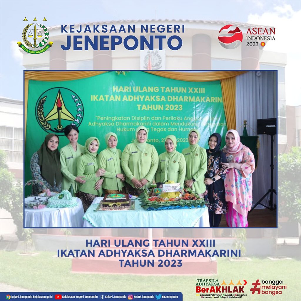 Memperingati Hari Ulang Tahun XXIII Ikatan Adhyaksa Dharmakarini tahun 2023 bertempat di Aula Kejaksaan Negeri Jeneponto.