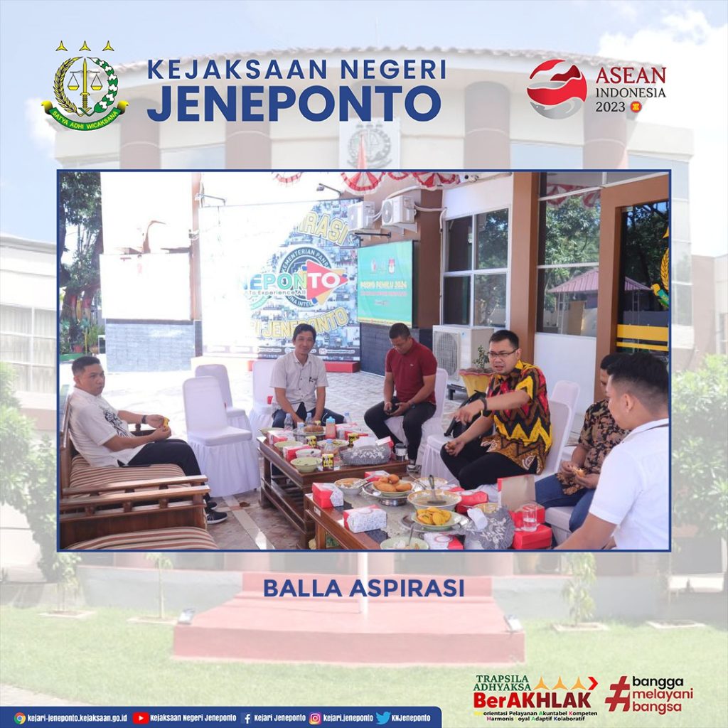 Untuk menyerap aspirasi masyarakat terkait masalah hukum, Kejaksaan Negeri Jeneponto kembali menyelenggarakan program “Balla Aspirasi” bulan kedelapan tahun 2023.
