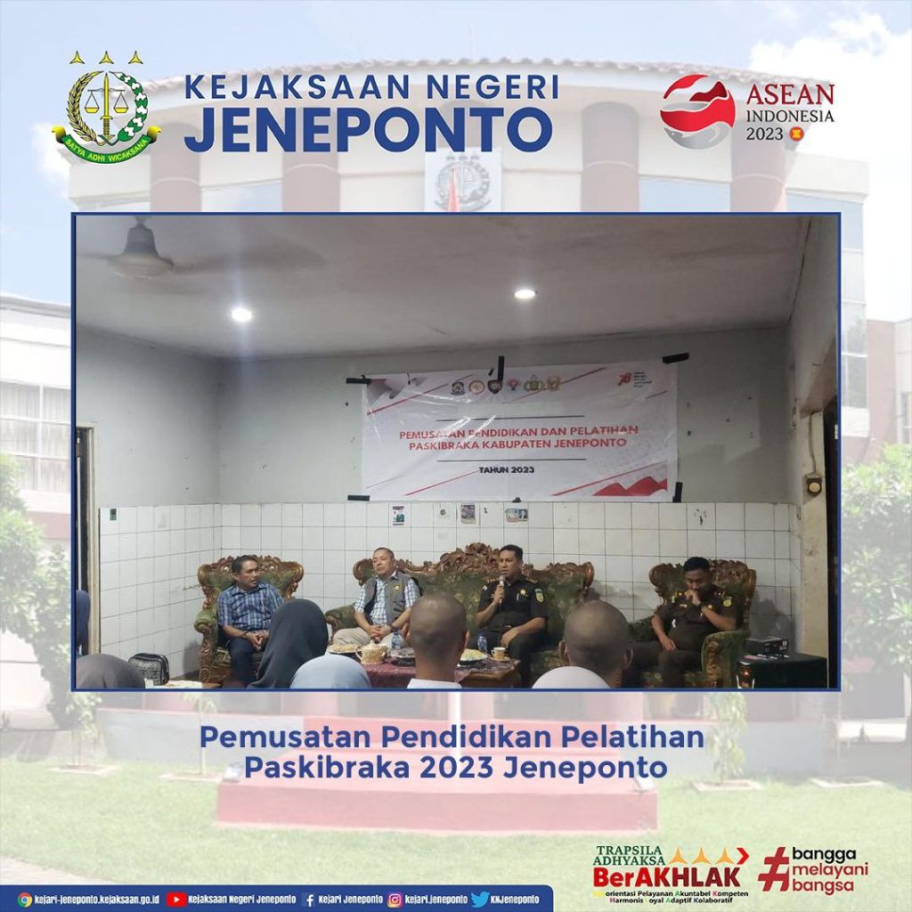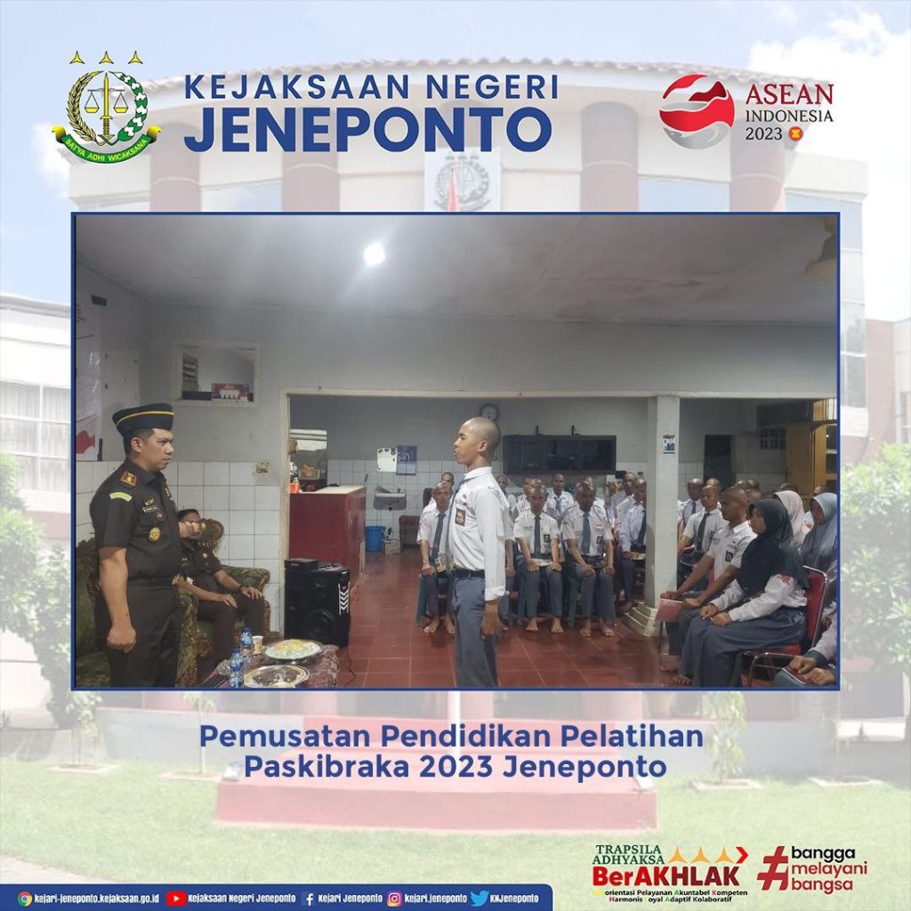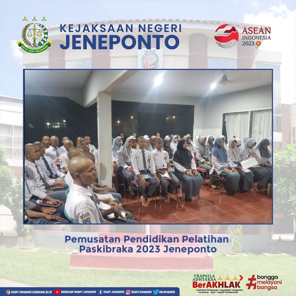 Kepala Kejaksaan Negeri Jeneponto dan Kepala Seksi Intelijen menghadiri dan menjadi narasumber dalam Kegiatan Pemusatan Pendidikan Pelatihan Paskibraka Jeneponto bertempat di Aula Penginapan Putri Solo.