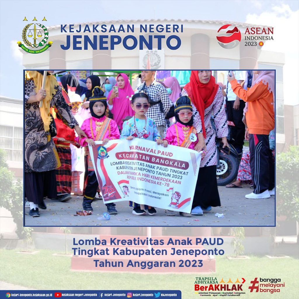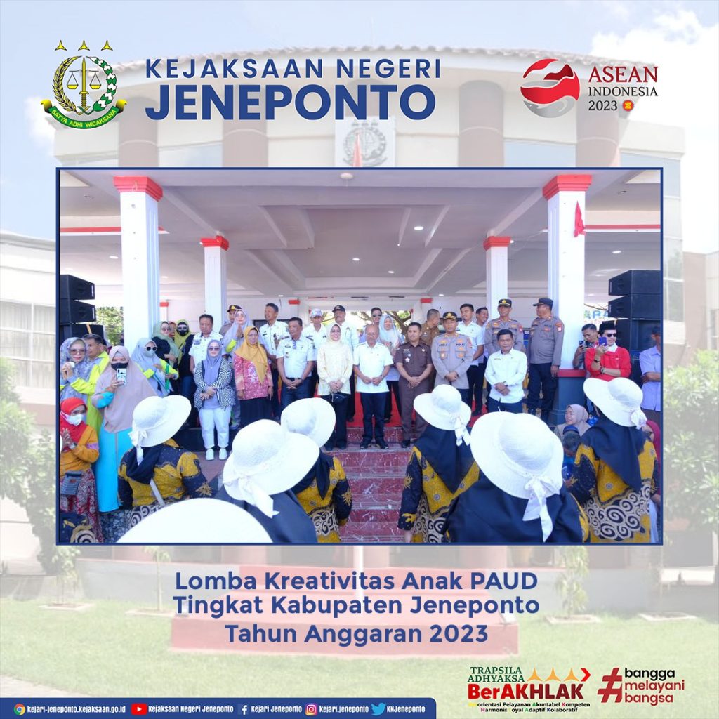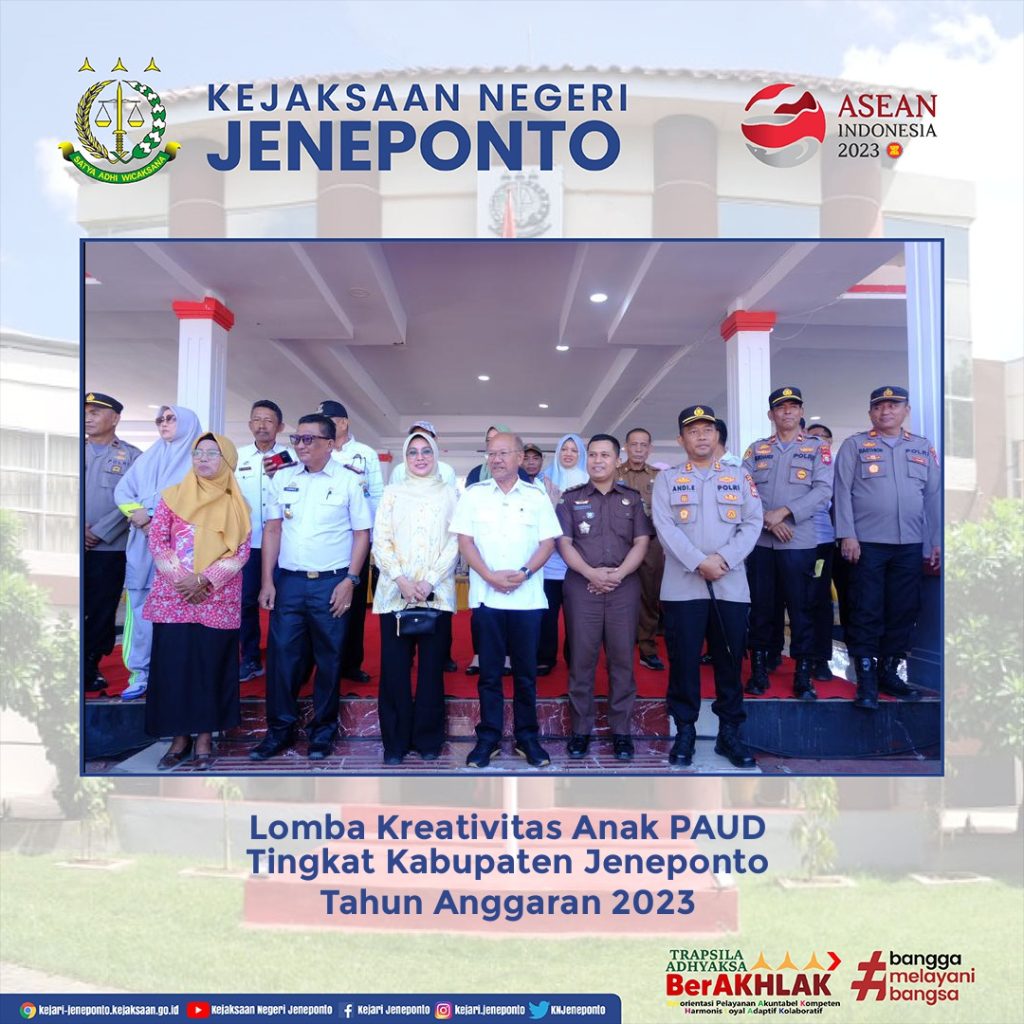 Kepala Seksi PB3R Tiar Adi Riyanto, S.H. Mewakili Kepala Kejaksaan Negeri Jeneponto Menghadiri Kegiatan Lomba Kreativitas Anak PAUD Tingkat Kabupaten Jeneponto Tahun Anggaran 2023 bertempat di Lapangan Parang Passamaturukang Jeneponto