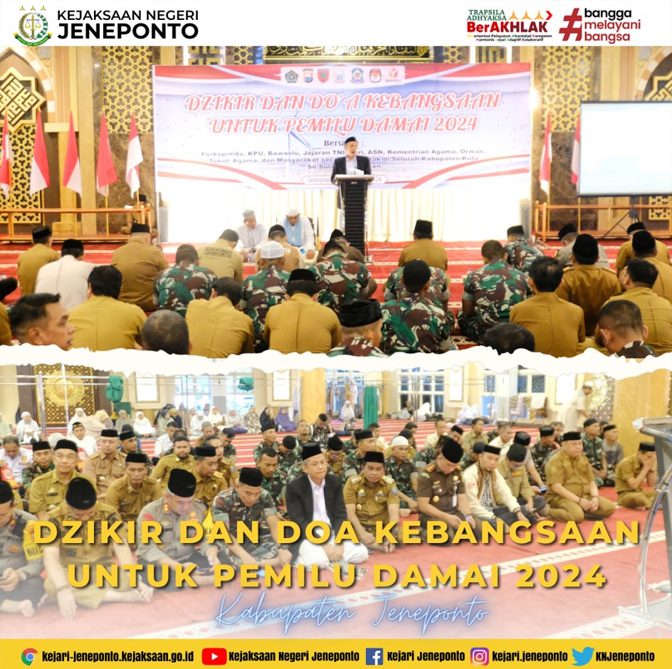 Kepala Kejaksaan Negeri Jeneponto menghadiri kegiatan Dzikir dan Doa Pemilu Damai Tahun 2024 bertempat di Masjid Agung Kab. Jeneponto,