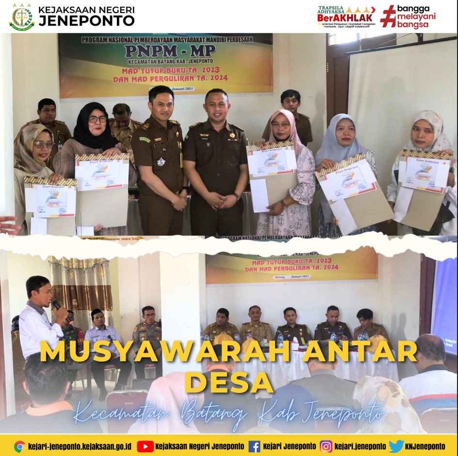 Bertempat di Kantor PNPM Mandiri Kecamatan Batang Kab. Jeneponto, telah dilaksanakan Musyawarah Antar Desa dengan agenda tutup buku tahun anggaran 2023 dan perguliran dana tahun anggaran 2024 Kec.Batang