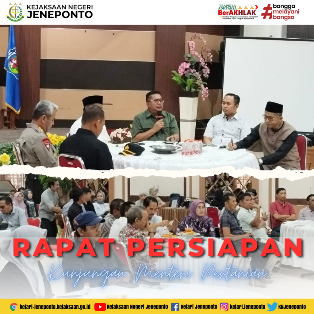 Bertempat Baruga Kalabbirang Rujab Bupati Kab. Jeneponto, telah dilaksanakan Rapat Persiapan kunjungan kerja Menteri Pertanian RI di Kabupaten Jeneponto